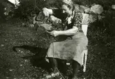 Frimärke ur Gösta Bodmans filatelistiska motivsamling, påbörjad 1950. Frimärke från Guadeloupe, 1947. Motiv av skördande av sockerrör.