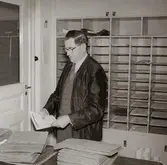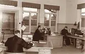 Kontorsskrivare V Wimmerstedt i sitt tjänsterum; Jvm Sista dagen vid SJ