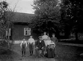 Karl Svensson,"Svenna-Karl" med sin familj utanför bostadshuset i september 1916.