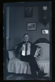 En man med musikinstrument (dragspel). Gunnar Peters. Hans egentliga namn var Adolf Gunnar Pettersson (1922-2007), men kallade sig när han spelade för Gunnar Peters.