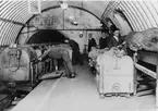 Byråsekreterare Olof Råstock t.v. är initiativtagare till pallastningen och har organiserat hela verksamheten. Här tillsammans med sin chef avdelningsdirektör Alf Lindeberg på generalpoststyrelsens trafikavdelning, som närmast har ansvaret för att posttransporterna löper planenligt.