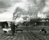 Bild när Ångkvarnen stod i brand den 6 juli 1935.