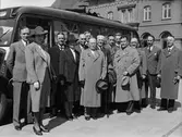 Styrelsen för Finlands befolkningsskyddsorganisation, med universitetskansler professor Gustaf Komppa från Åbo som färdledare, tillsammans med de uppsaliensiska värdarna utanför Uppsala centralstation