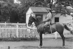 Enligt tidigare noteringar: "Ridande polisen med kask och sabel stationerad generalstrejkåret 1909 i Uddevalla."