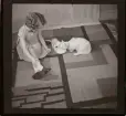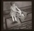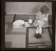 585/8 Facit Tokyo Daberg. Ett barn i kimono med en katt i famnen.