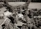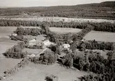 Flygfoto över Sundsholms säteri i Gladhammar. Vy på säteriet med ekonomibyggnader och åkrar samt Östersjön.