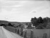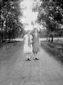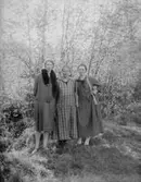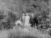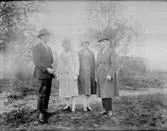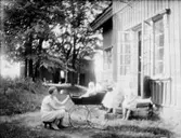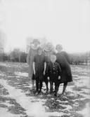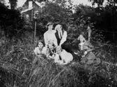 Kvinnor och barn samlade för fotografering på verandans trappa.