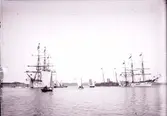 Enligt text som medföljde bilden: "Marstrand, Najaden, Gladan, Falken".