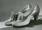Dammode. Högklackade skor med öppen tå och slingback. Nordiska Kompaniet.