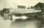 Sjösättning av fartyg på Kalmar varv med festligheter, 1940-talet.