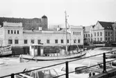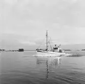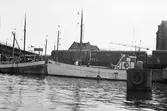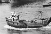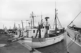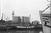 Lunde varv Ångermanland, Gudmundrå sn. Lunde. Fiskebåt HND 15 från Härnösand inne på varvet för kölreparation. I bakgrunden syns en av varvets tre pontonkranar, med vilka man gör muddringsarbeten i egen regi längs ostkusten.
