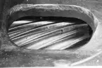 Elektriska maskiner. Hojums kraftverk i Trollhättan byggt 1943 av Kungl. Vattenfallstyrelsen. Kaplanturbin He = 31,5 meter, N = 78 500 hk och n = 136,3 varv/min. Max. fallhöjden är 33.25 meter högsta i Sverige dags dato. Löphjulet hänger i stationens travers, färdigt att sänkas ned i turbinschaktet.