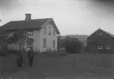 I bakgrunden till vänster ses rivningen av boningshuset Långåker 1:2 cirka 2000. En del av gaveln och ytterväggar ingår i det nya huset. Det röda huset till höger är hembygdsgården Långåker 1:3.