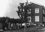 "Västergården" i Knisselbo. Per Hansson, kallad "Bikungen", vid bikuporna.