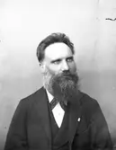 "Patriark" med helskägg. Påminner om "Klockar-Skog", folkskollärare och kantor i Hedesunda i början av 1900-talet.