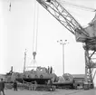SVERIGE bogseras in till kajen T.v. Landskrona hamn.