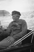 Den norske seglaren Børre Falkum-Hansen med fru välkomnas på Strandvägen i Stockholm av kapten Hans Hedberg.