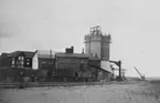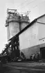 Kalklinbanan Forsby - Köping. Linbanestationen i Köping. Sommarlager av "Carbitalsten", handsorterad för tillverkning av pigment för bestrykning av papper. Lagerhall för krossat material. Silos för diverse brända produkter.