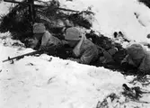 "2,500 man på upländsk manöver. Realistisk strid under morgontimmarna i dag i trakten av Järlåsa", Uppland december 1942