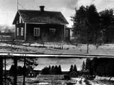 "Roos handelsträdgård vid Kyrkogårdsvägen." Odlingar med växthus i bakgrunden och en funkisvilla.