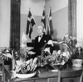 GOTLÄNDSK LANTBREVBÄRING 1964. Fyra av Visbys sex lantbrevbärare samlade på Skeppsbron kring en gotlandskarta och förste kontrollör Stig Borg, andre man fr v..