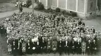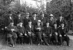 Stående: Carl Otto Lindholm f. 50. Gustaf Österdal f. 50. Richard Natanel Hagelin f. 50. Frans Vilhelm Sandén f. 50. Karl Ludvig Ekström f. 49. Carl Fredrik Norling f. 49. Sittande: Sven Johan Selander f.48. Anders Gustaf Linnblad f. 48. Per Gustaf Forelius f. 47. Karl Wallin f. 46. Josef Teodor Nyman f. 46. Studentfotot 1920? Elna Fagerström drev fotoateljé i Skara.