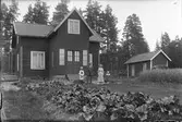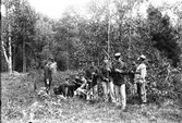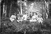 Från vänster okänd, Axel Jönsson, Lydia Jonsson, Arnold och Arne Jönsson, Elin och Erik Jonsson och en okänd liten gosse