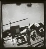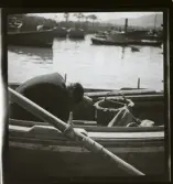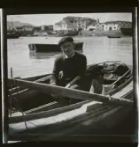 Tre män i en eka. I mitten Målar-Emil (Nilsson), i aktern mjölnarens Olle Olsson från Lenninge 14:2 (född 1893).