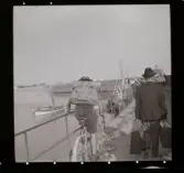 1690 New York allmänt (N.Y. Herald Tribune). En bil med text "Nova Scotia food products corp." och reklam för rysk kaviar står parkerad framför en lagerbyggnad i Brooklyn.