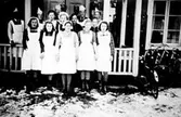 Kvinnan i ljus klänning: Stina Eriksson, mannen i slips näst längst bak: Torsten Eriksson.