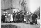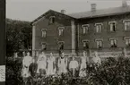 Enligt text som medföljde bilden: "Barnfest vid badhuset".