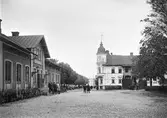 Ljungby station till höger i bild, anlagd 1878. Bakom trädallén syns gamla Tellushuset.