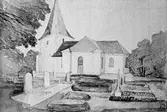 FYRA HANTVERKARE VID KORET I EN KYRKA.