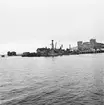 Bilden föreställer småbåtshamnen på Sandhamn sett från havet.