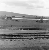 Bussar utanför stationen. Station öppnad 1.1.1916. Stort en- och enhalvvånings stationshus i trä