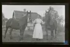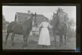 "Hedda Gustavsson, Katrineholm/ A-LE" En kvinna står mellan två hästar hon håller i vardera hand.