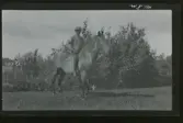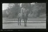 "Berg, Albin Videll." En man sitter i stumplästen på en häst.