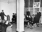 "Provsittning i luftskyddsrum No 19 under det stora generalrepet.Utrymmet är rikligt - både med tanke på disponibel golvyta och luftkub för varje besökare." Nordiska Kompaniet.
