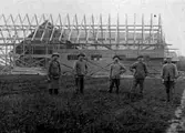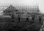 Byggmästaren Anders Diös, direktör Martin Edlund med flera på Vaksalaskolans gård.