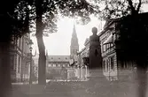 Stockholm. Två kvinnor och två män skulpterar av äldre kvinna med liten hatt. 1901.