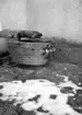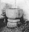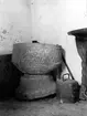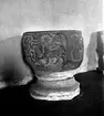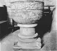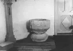 Interiör av Sköllersta kyrka, dopfunt. Bilden tagen för vykort. Förlag: Ellert Torgén, Sköllersta.