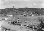 Hamnen i Färjestaden med en inkommande färja.
