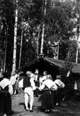 Vykort med motiv från Skansen. "Folkdanslag från Orsa, Dalarna."