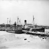 [från fotobeskrivningen:] "FINNGRUNDET förtöjes utanför Wasavarvet 16.7.1970"