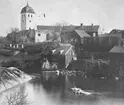 Bostadshus vid ån, nedanför kvarnen. Längst ner syns garveriet. På andra sidan om garveriet låg före 1890 en barkkvarn som drevs med ett stort hjul.