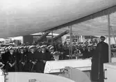 Krigsskoleavdelningen under CM:s inspektion den 11/9 1947. Akterskeppet på kryssaren Gotland samt minsveparen Ulvön.