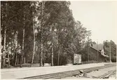 Bild tagen på framsidan av Karlsborgs Stationshus 1986-05-05, en torsdag