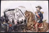"La reine Christine, l'Impératrice Eugénie, l'Empereur." Den franske kejsaren Napoleon III till häst vid Sartory, juli 1853. Akvarell av Fritz von Dardel