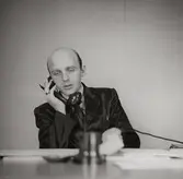 Bokhållare (Bh) Julner vid sitt skrivbord.