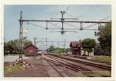 Stationshuset byggdes 1888. Stationshuset, en- och halvvånings med väntpaviljong, ombyggt 1919 och 1939.